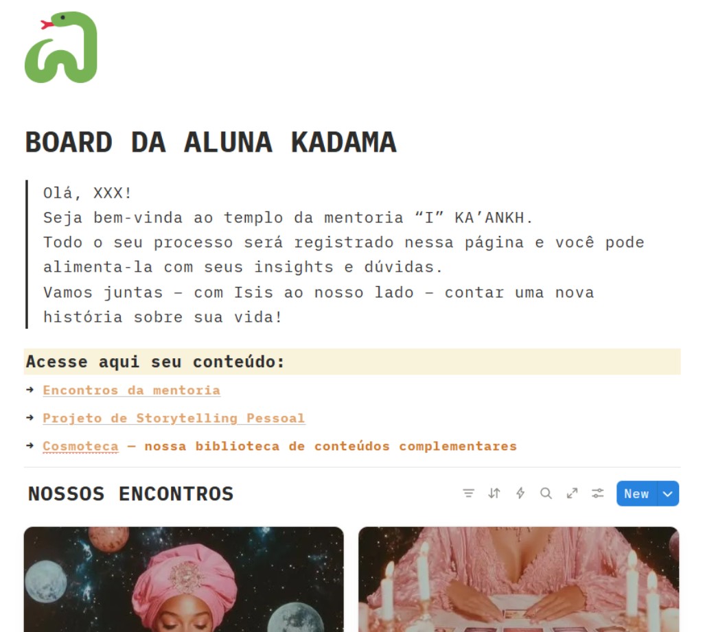 A mentoria acompanha um board no Notion no qual todo o processo será registrado e você poderá alimenta-la com seus insights e dúvidas.
